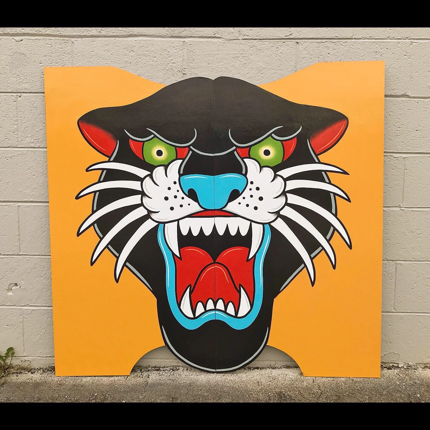 As promised, here is the updated “Swing Door”. I’ve painted on the dots and the black panther on the back side. I’m looking forward to working with more tattoo shops and parlors around the area.