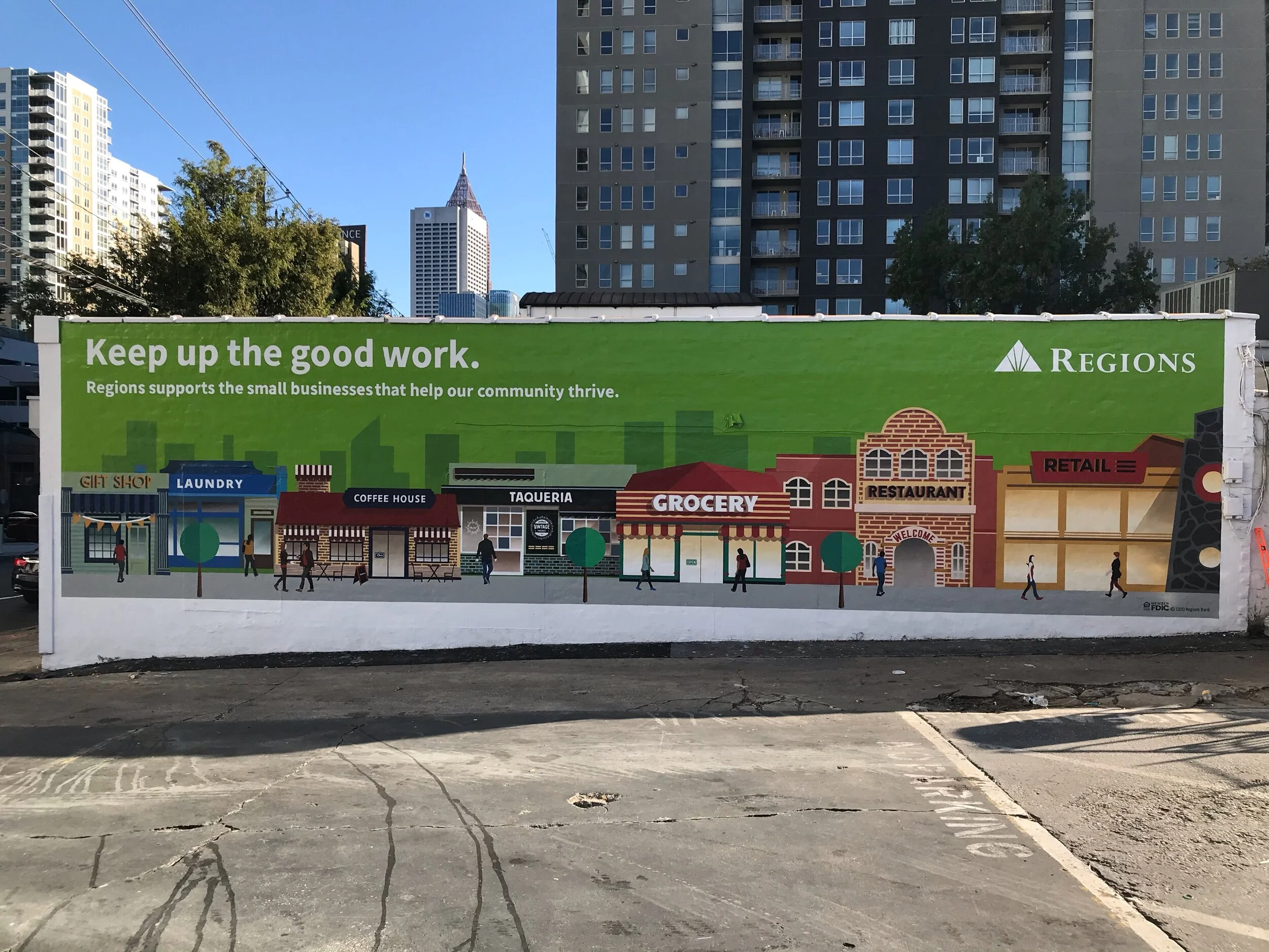 Did some freelance work for Overall Murals and regions bank. It was fun painting it with my old classmate Crystal.